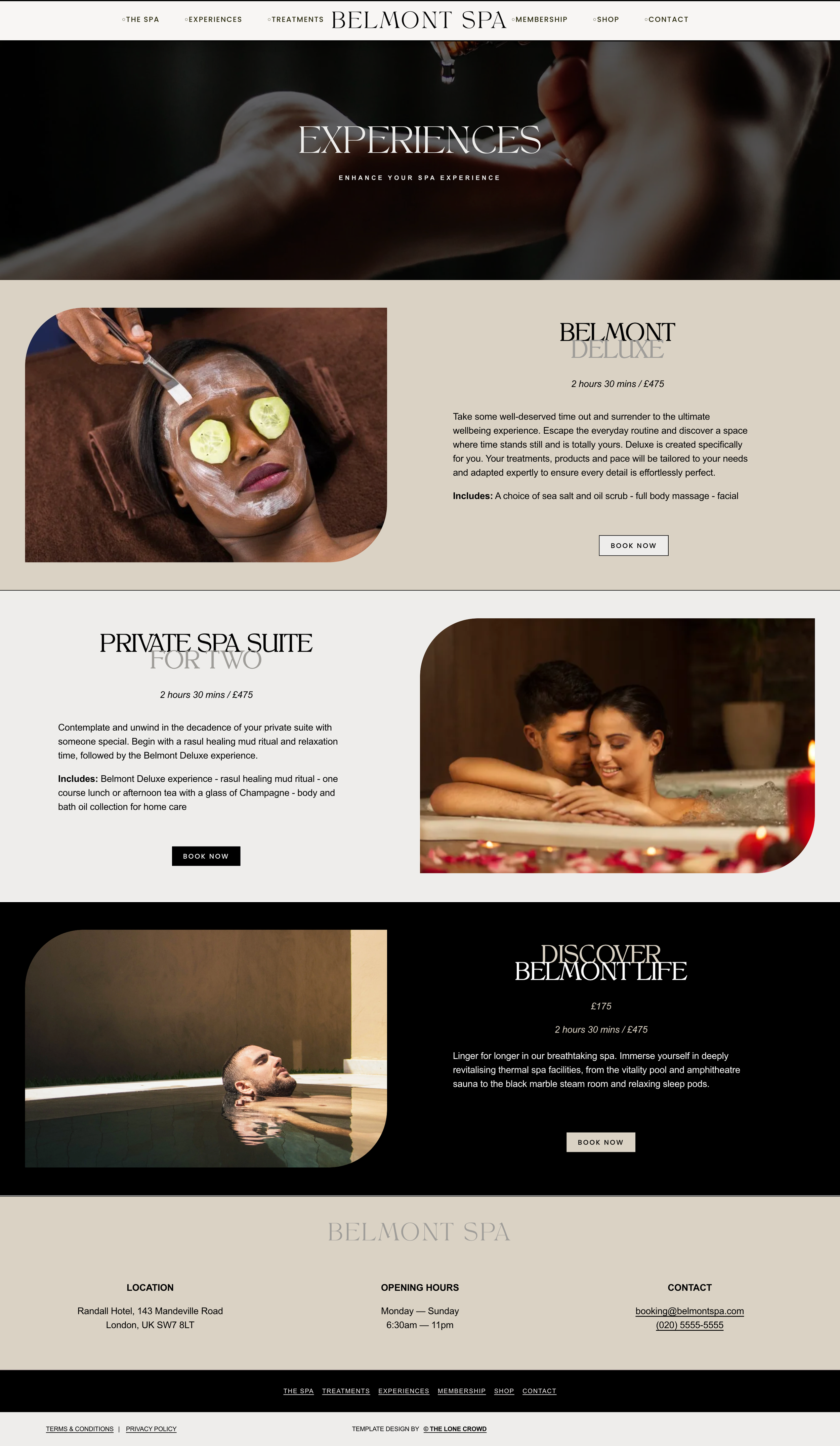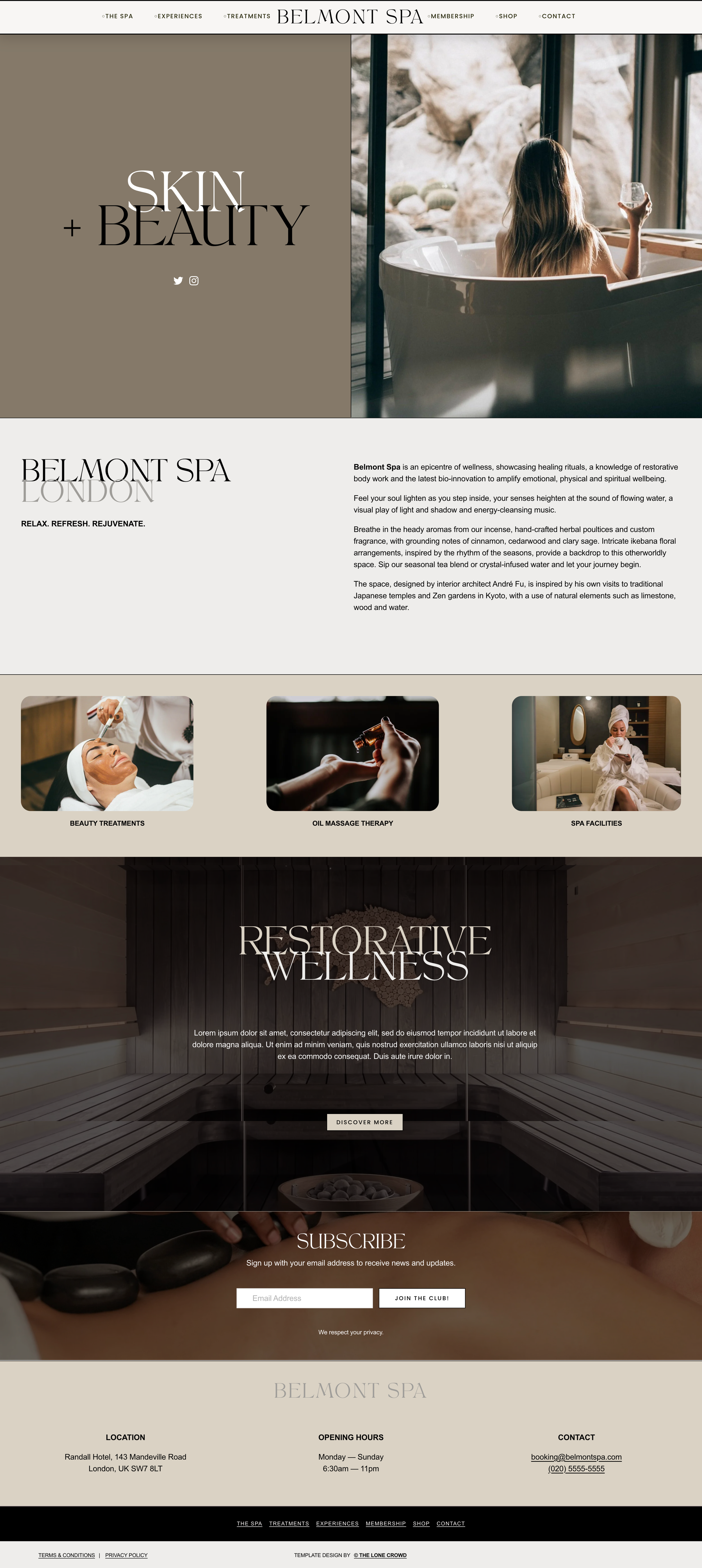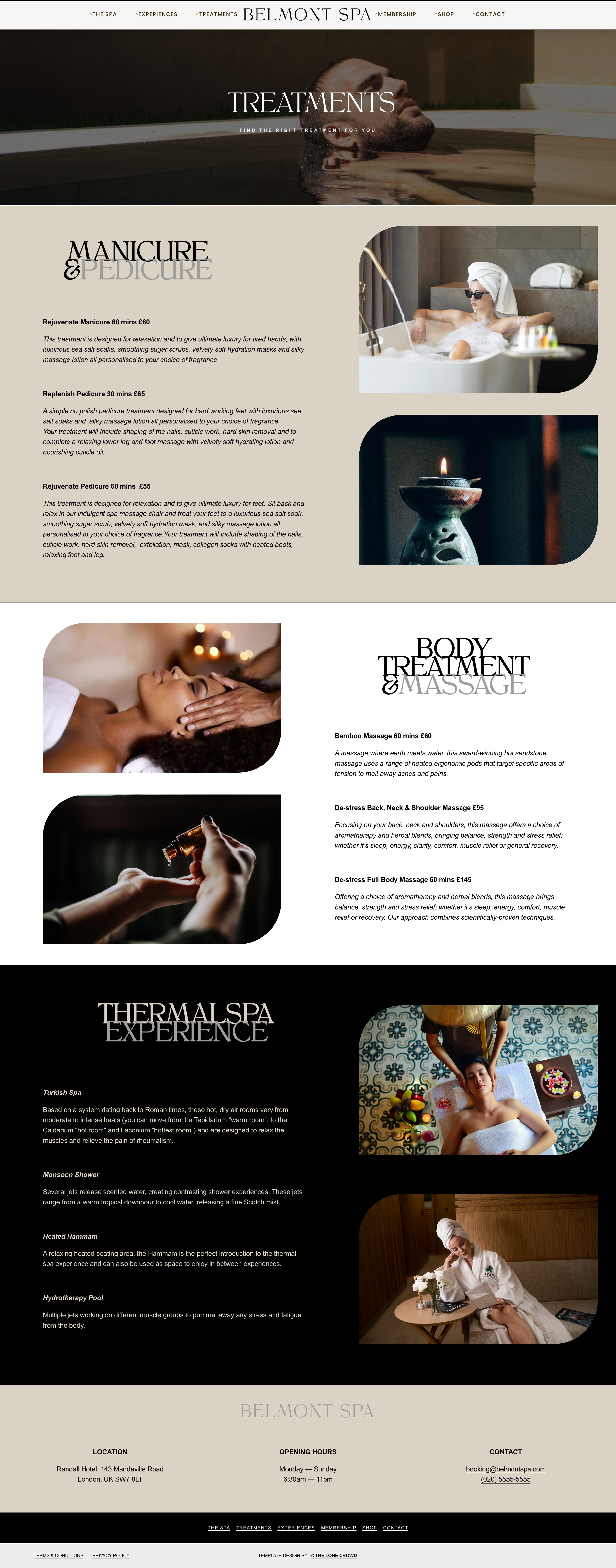 The Spa, Treatments, Experiences, Membership, Shop, Contact
