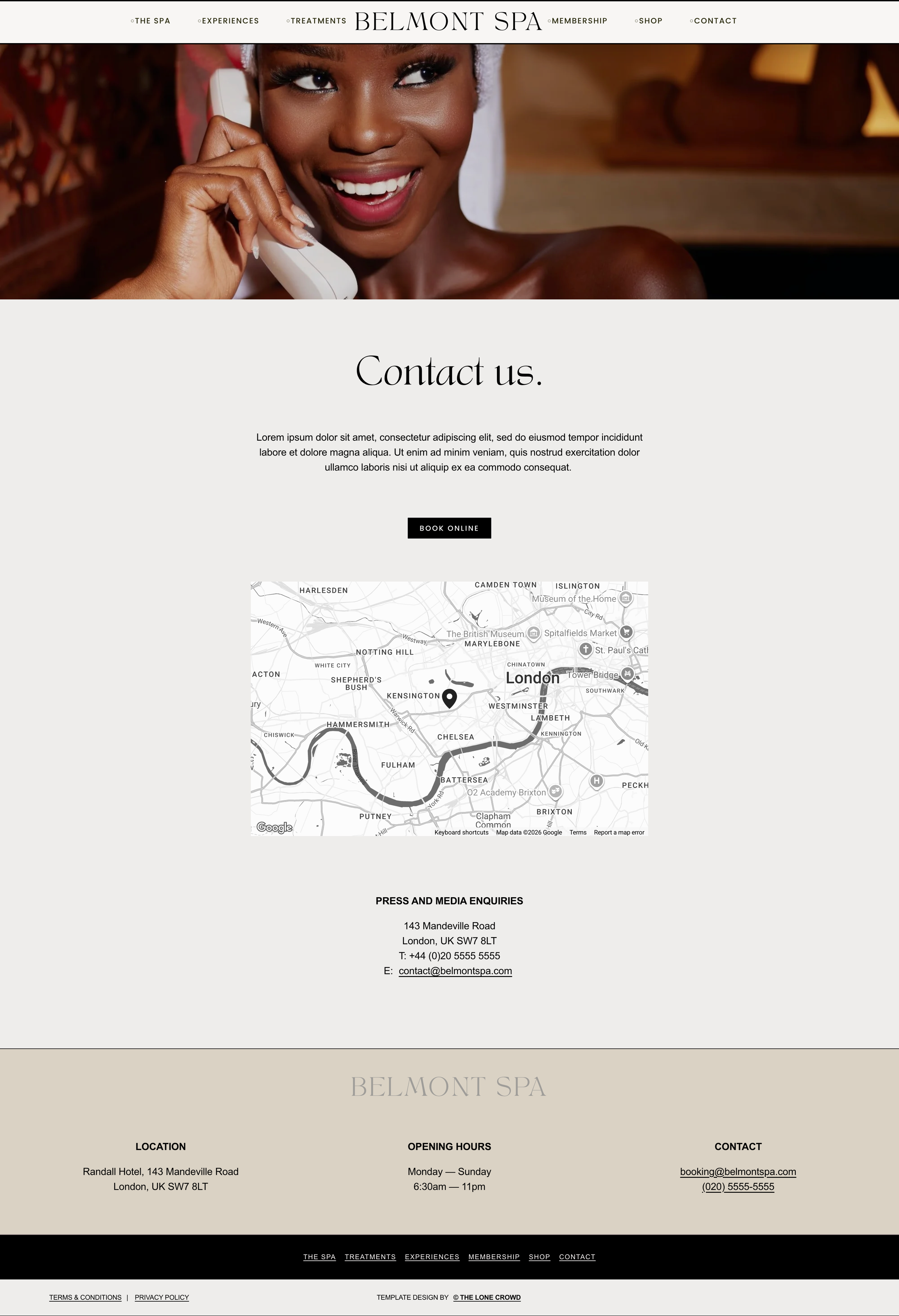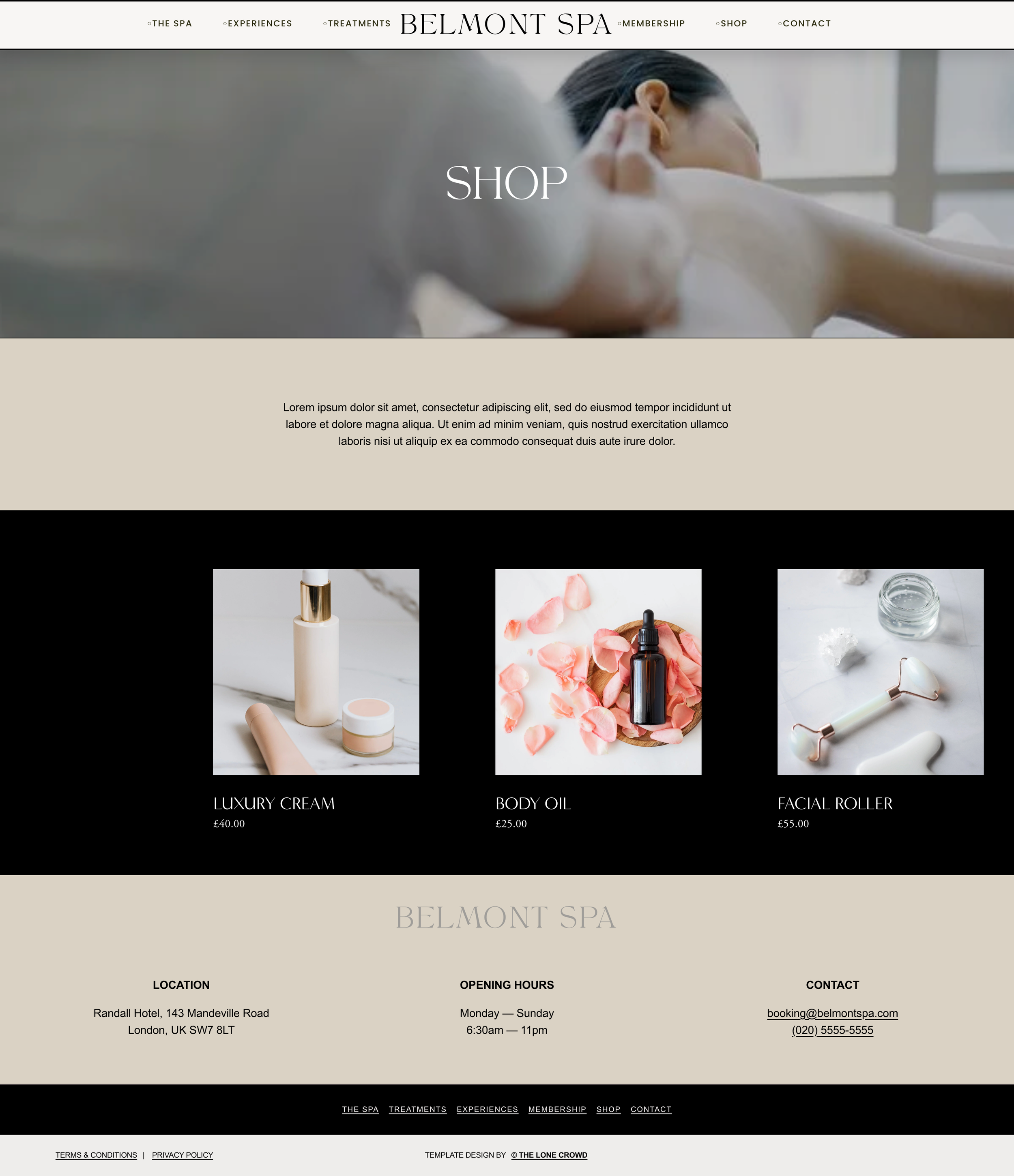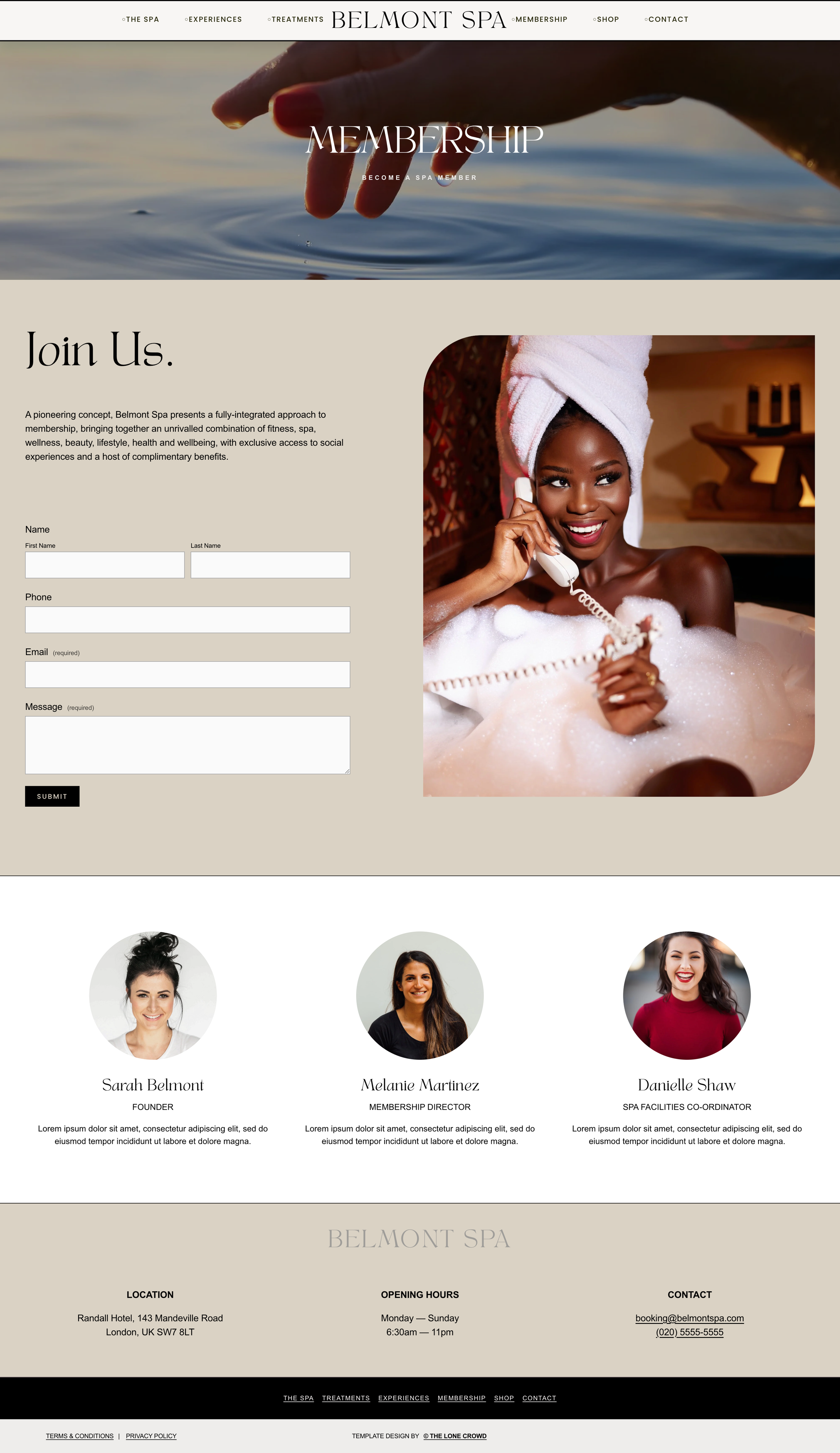 The Spa, Treatments, Experiences, Membership, Shop, Contact