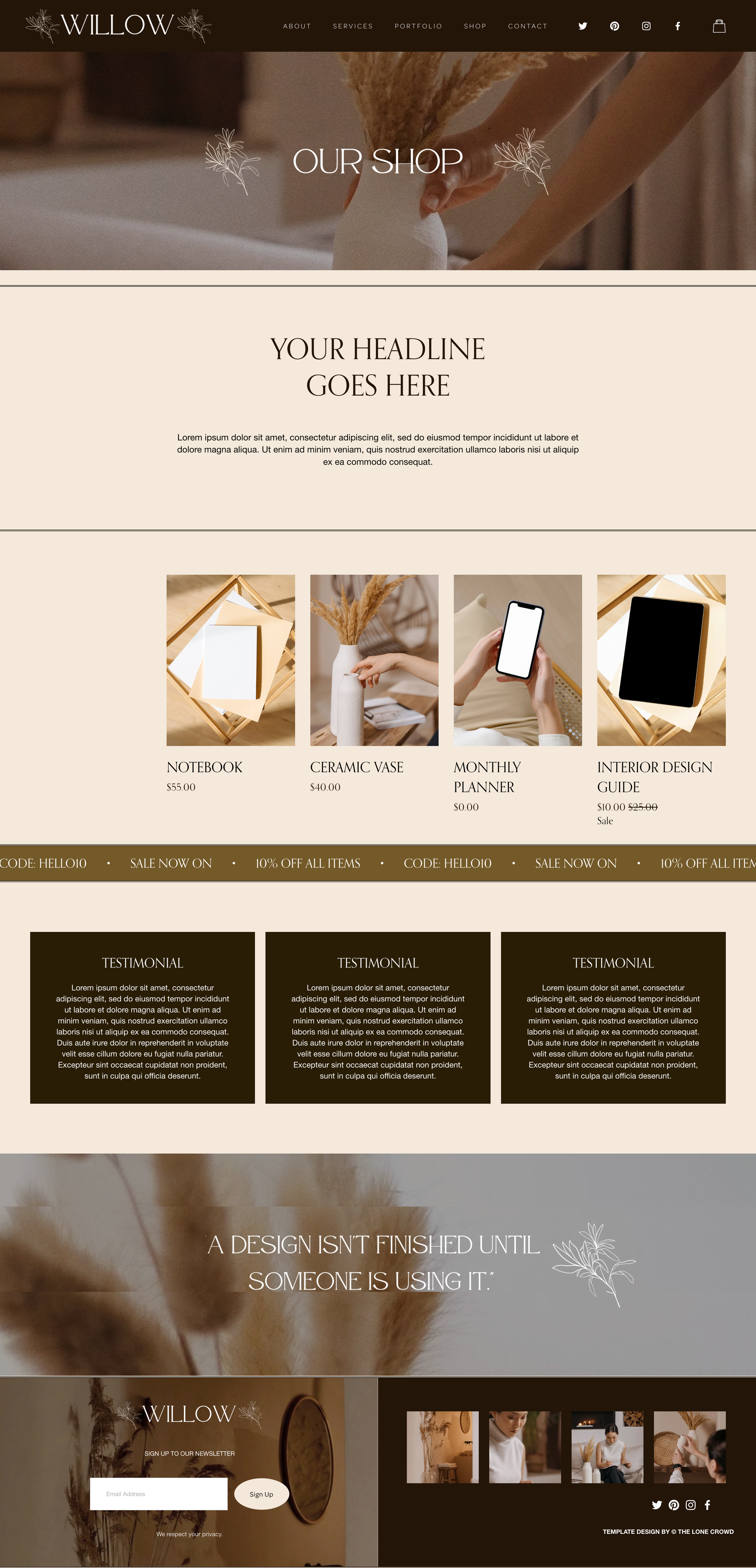 WILLOW is a versatile website template that blends a timeless design with a natural bohemian style. The warm, inviting tones create a professional yet approachable look. Ideal for creatives, lifestyle brands, and entrepreneurs who want a polished online presence with an earthy vibe.